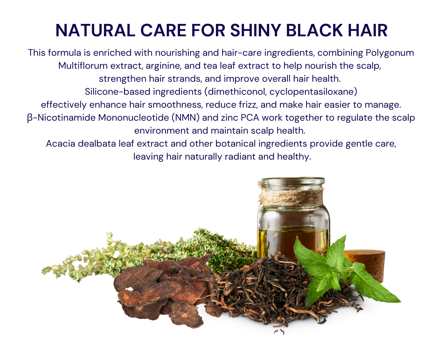 Ingredients: Aqua, Cetearyl Alcohol, Dimethiconol, Dimet- hicone, Cyclopentasiloxane, Polygonum Multiflorum Extract, Arginine, Camellia Sinensis Leaf Extract, Acetyl Tyrosine, Pinus Palustris Leaf Extract, Nicotinamide Mononu- cleotide, Sodium Metabisulfite, Zinc PCA, Parfum, Glycerin, Acacia Dealbata Leaf Extract.