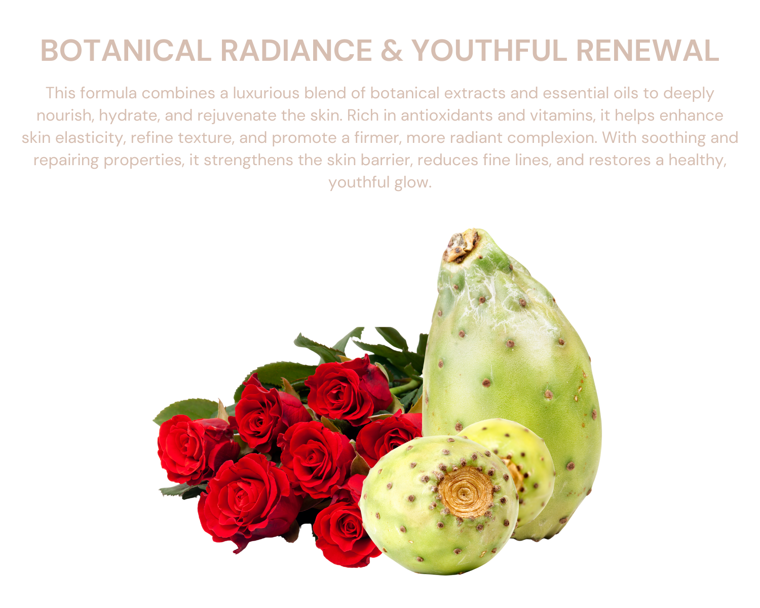 Ingredients: Opuntia Ficus-Indica fruit extract, rose (ROSA RUGOSA) flower oil, myrtle (MYRTUS COMMUNIS) oil, Mediterranean cypress (CUPRESSUS SEMPERVIRENS) oil, Chinese cedar (SIMMONDSIA CHINENSIS) oil, sandalwood (SANTALUM ALBUM) oil, Panax ginseng root extract, Melaleuca viridiflora leaf oil, myrrh (COMMIPHORA MYRRHA) resin extract, eucalyptus (EUCALYPTUS GLOBULUS) leaf oil, wheat germ (TRITICUM VULGARE) extract, frankincense (BOSWELLIA CARTERII) oil, evening primrose (OENOTHERA BIENNIS) extract, pelargonium graveolens flower oil, rosemary (ROSMARINUS OFFICINALIS) extract, pomegranate (PUNICA GRANATUM) seed oil, jasmine (JASMINUM SAMBAC) flower oil, Melaleuca leucadendron cajaput oil.