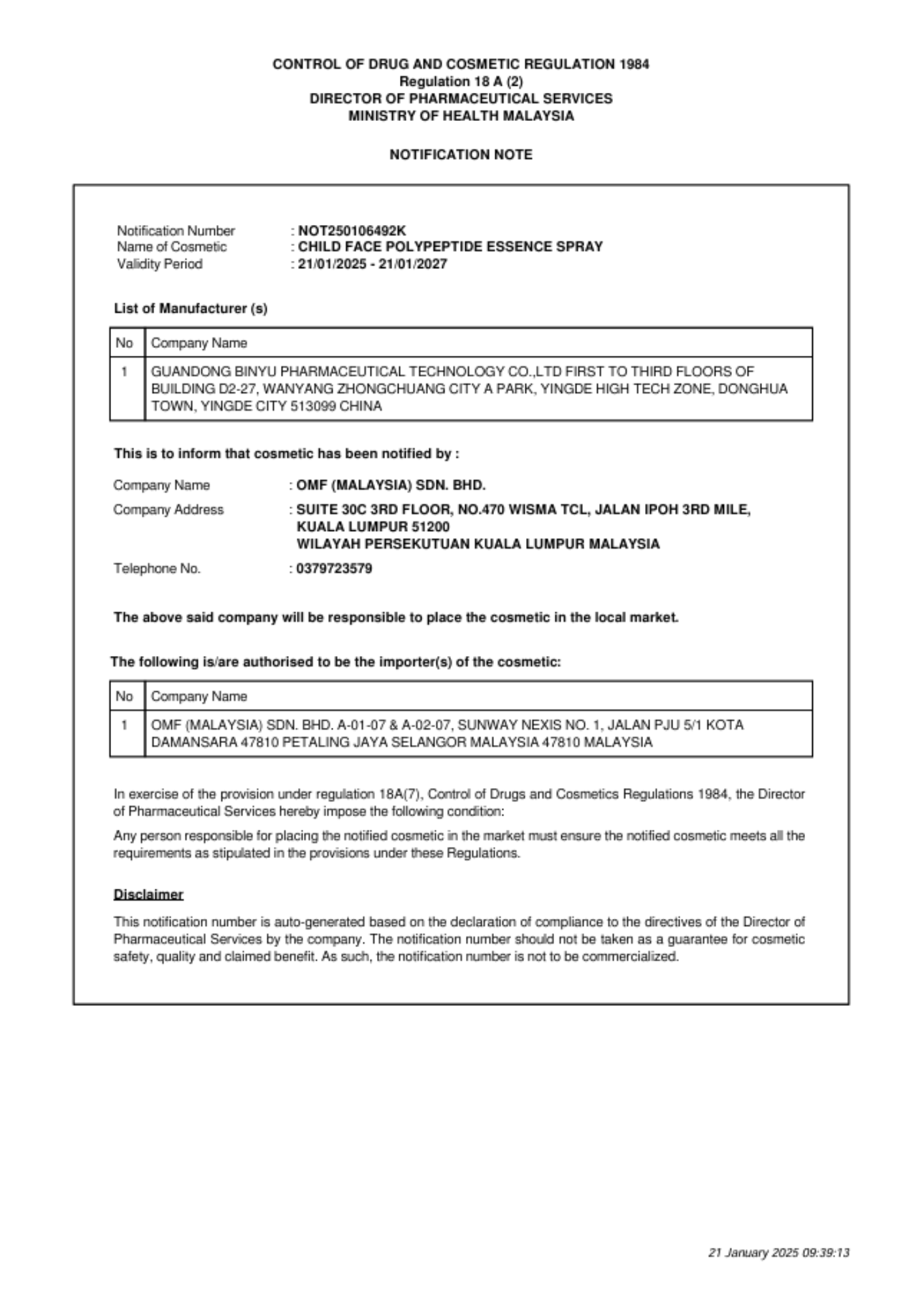 CHILD FACE POLYPEPTIDE ESSENCE SPRAY