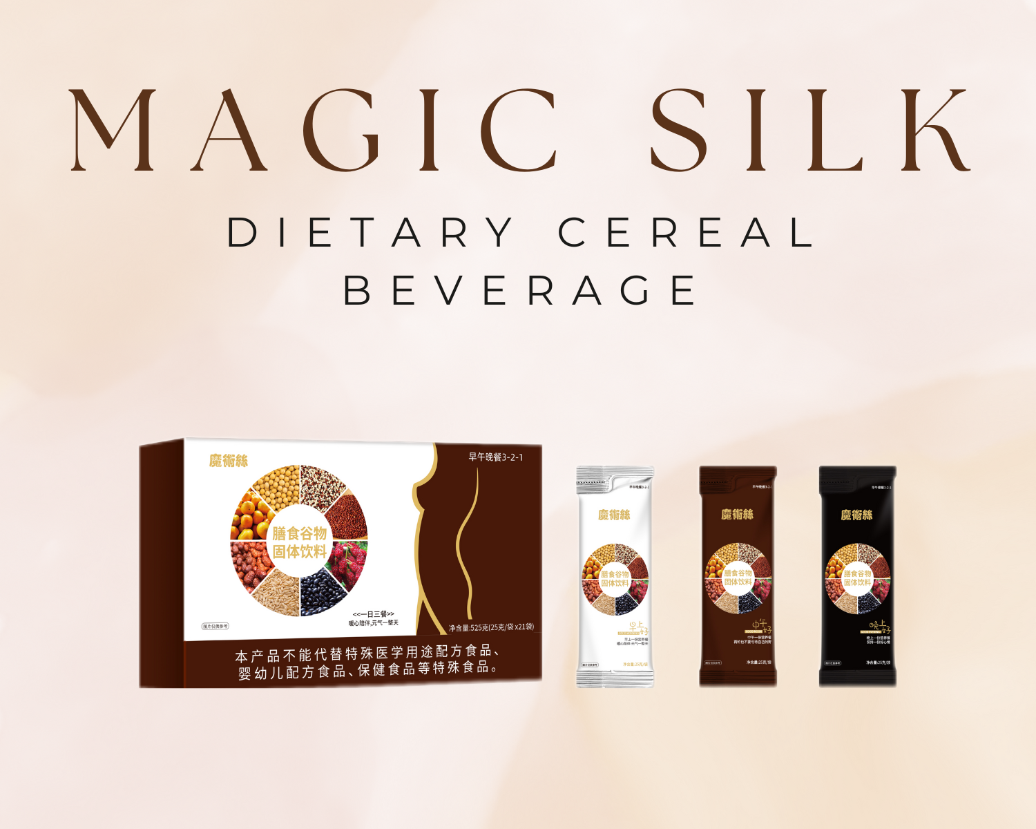 - Breakfast:Oat powder, soy protein isolate, coconut milk powder, resistant dextrin, L-arabinose, crystalline fructose, coix seed powder, whole milk powder, quinoa powder, Haematococcus pluvialis microalgae powder, small-molecule donkey-hide gelatin peptides, pea protein powder, white kidney bean powder, green coffee powder, ginseng peptides (cultivated ginseng), Plantago ovata husk powder, konjac powder, erythritol, banana powder, blended nutritional fortified vitamin powder (vitamin C, vitamin E, niacinamide, vitamin A, vitamin B2, pantothenic acid, folic acid, vitamin B6, vitamin B1, vitamin D, vitamin B12), sodium carboxymethyl cellulose, silica, edible flavoring, sucralose.