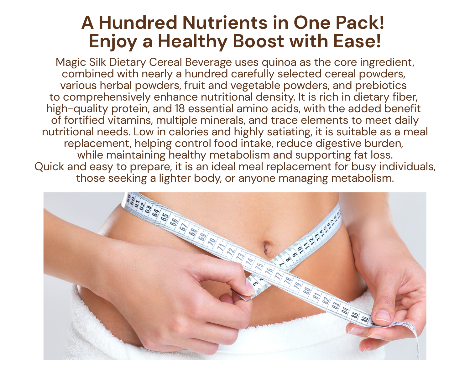 Not suitable for pregnant or breastfeeding women, and children under 14 years of age. Allergen information: This product contains gluten-containing grains and their products, soy and soy products, as well as milk and dairy products.